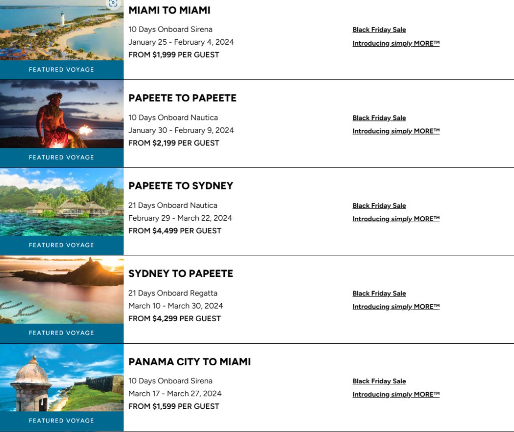 Luxury cruise line Seabourn is reducing required deposits by 50%, offering up to $2,000 onboard credit, and veranda suite upgrades for its Black Friday Sail. Book by Dec 4, 2023 to enjoy select perks on eligible 2024 sailings.