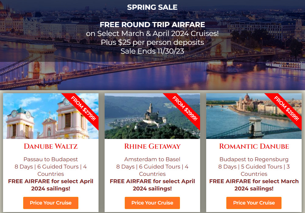 Drink up on Viking Cruises with a complimentary Silver Spirits Beverage package on select 2023 & 2024 Viking River and Viking Ocean sailings. Book by Nov 30, 2023. Viking is also giving some Spring 2024 vacationers free round-trip airfare, plus low deposits of only $25 per person.